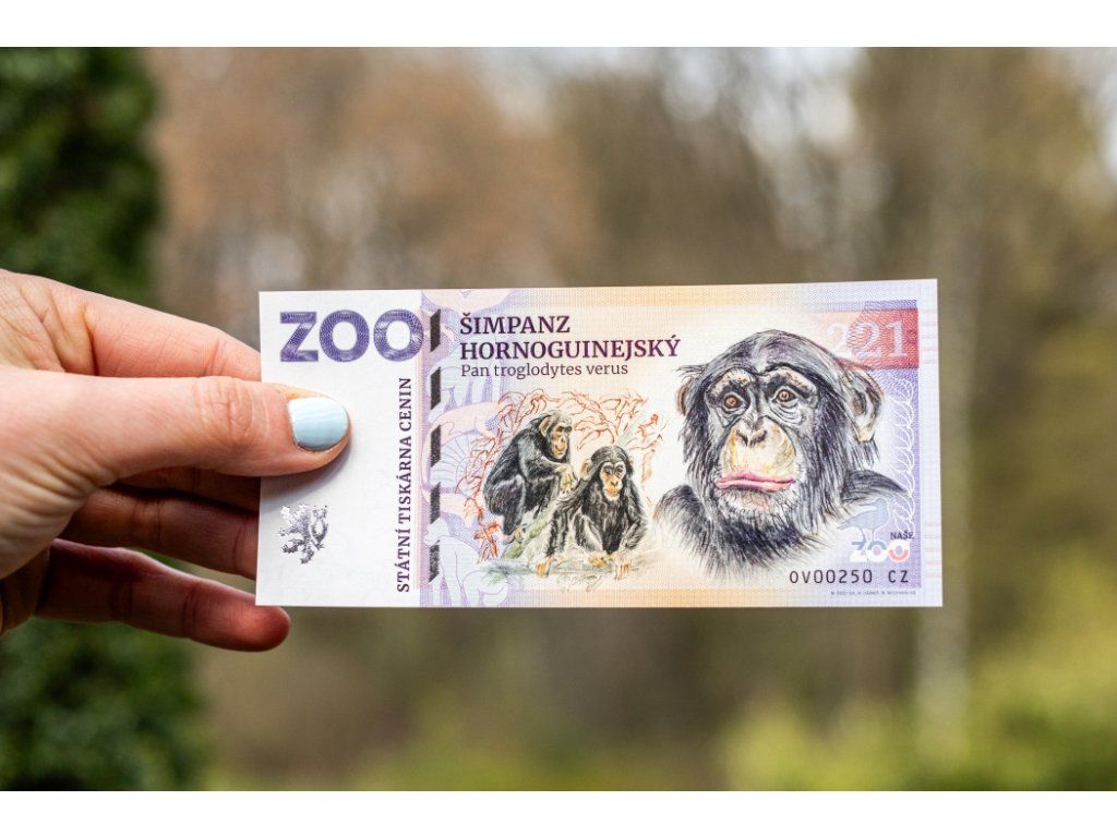 Pamětní zoolar Zoo Ostrava s ilustrací šimpanze hornoguinejského.